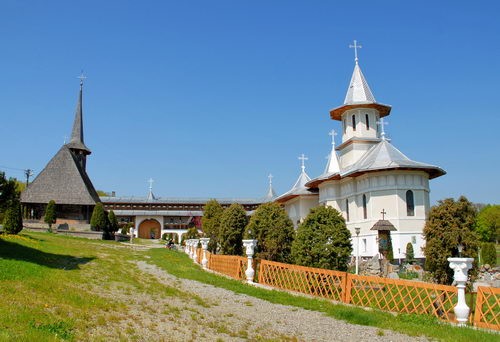 Manastirea cuprinde biserica veche din lemn, biserica noua, chiliile, caminul de batrani si scoala orfelinat.